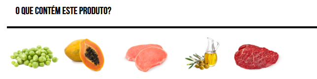 Carne de vaca fresca 22%*, carne de porco fresca 20%*, papaia fresca 4%*, ervilhas, substâncias minerais, azeite 0,1%*, extrato de malte 0,02%. *Ingredientes naturais.