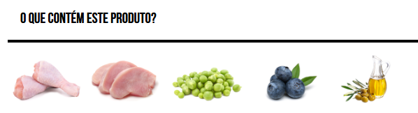Peru fresco 24%*, frango fresco 18%*, mirtilos frescos 4%*, ervilhas, substâncias minerais, azeite 0,1%*, extrato de malte 0,02%. *Ingredientes naturais.