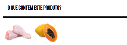 Frango 60%*, mamão 4%*, óleo de salmão, prebióticos 0,2 g/kg e extrato de mandioca 65 mg/kg. *Ingredientes naturais.