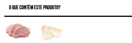 Robalo fresco 70%*, peru fresco 15%*, tapioca 9%, glicerina vegetal, Saccharomyces cerevisiae (fonte de MOS) 0,6%, chicória (fonte de FOS) 0,5%. *Ingredientes naturais.