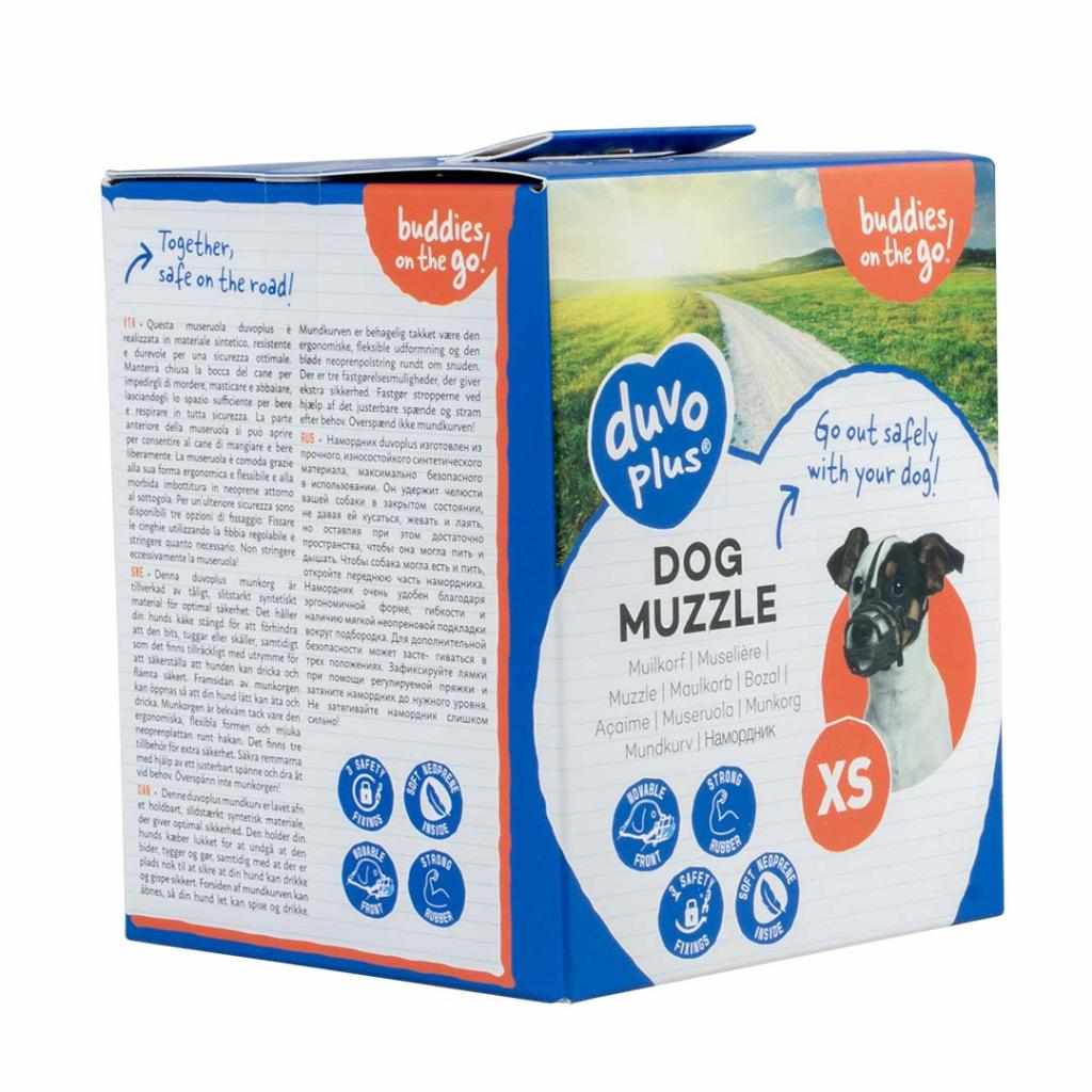 O Açaime Duvo Plus foi desenvolvido para garantir segurança sem comprometer o conforto do seu cão. Fabricado em borracha resistente, oferece proteção eficaz e espaço suficiente para que o seu patudo respire tranquilamente. A parte frontal pode ser aberta, permitindo que o cão coma ou beba sem necessidade de retirar o açaime.