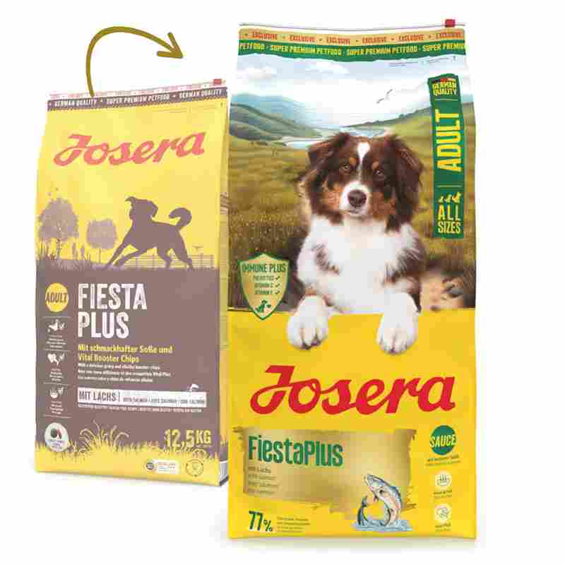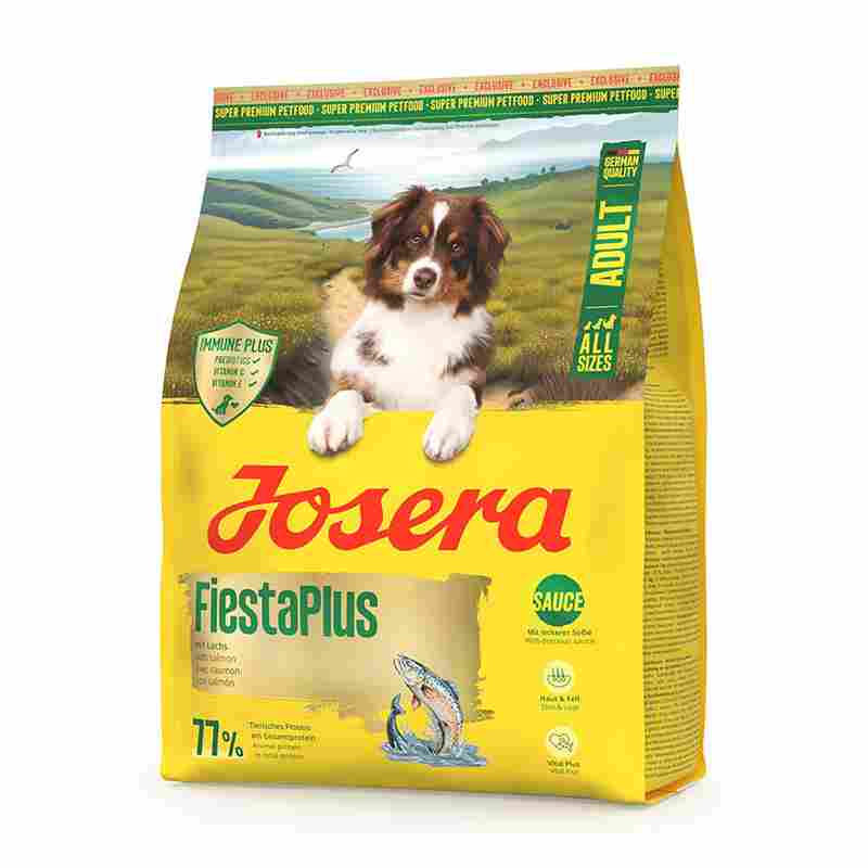 Para celebrar a alegria e a energia do teu patudo, escolhe Josera Fiesta Plus.