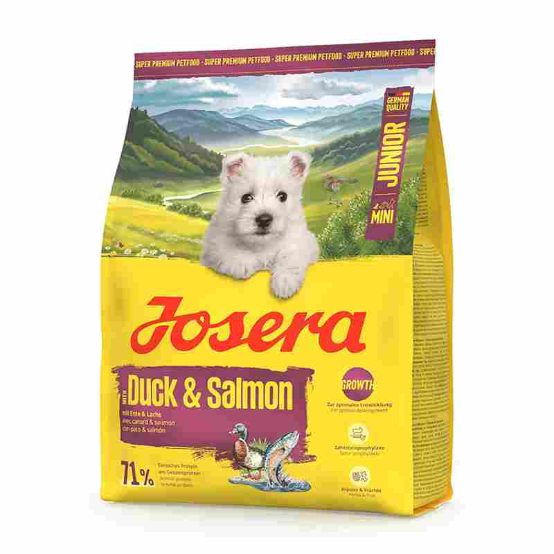 Pequenos, mas cheios de energia! Josera Mini Junior Duck & Salmon é uma ração especialmente formulada para garantir um desenvolvimento saudável aos filhotes de porte pequeno. Graças aos ácidos graxos essenciais do salmão, contribui para o desenvolvimento cerebral, enquanto a L-carnitina e as proteínas de alta qualidade favorecem a formação de massa muscular. A taurina e a L-carnitina também desempenham um papel importante na saúde cardíaca.