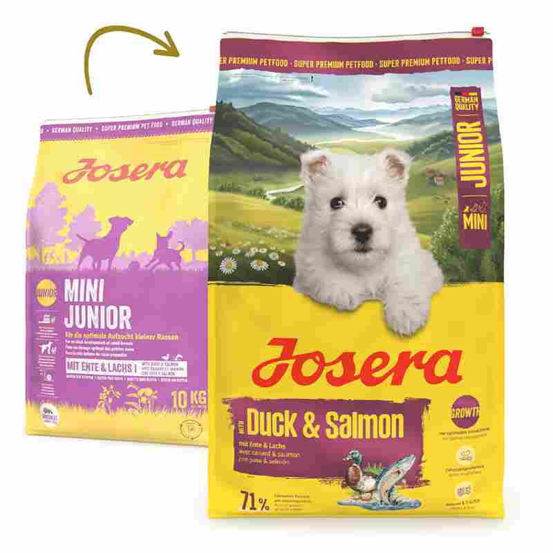 A antiga MiniJunior agora é Mini Junior Duck & Salmon, com novo design, mas mantendo a receita testada e aprovada.