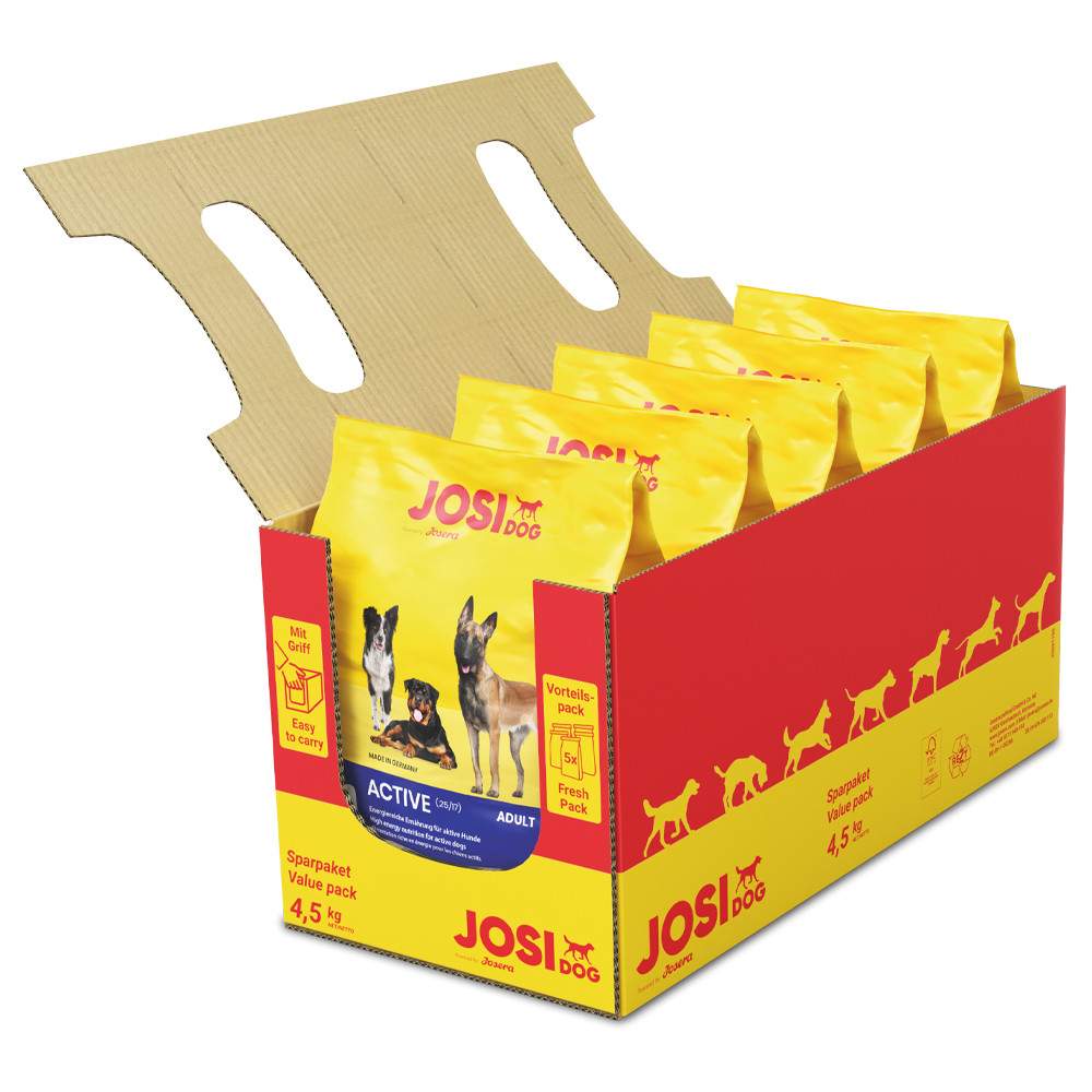 JosiDog Active é uma ração completa desenvolvida para cães adultos que necessitam de um aporte extra de energia, como aqueles que participam em competições ou vivem em ambientes com temperaturas extremas. Este alimento não contém corantes, aromatizantes nem conservantes artificiais.