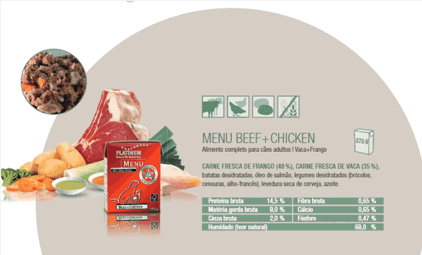 Platinum Menu Adult Vaca & Frango - Cão adulto