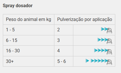 Spray: Pulverize diretamente nos dentes ou nas áreas afetadas (quantidade depende do peso do pet).