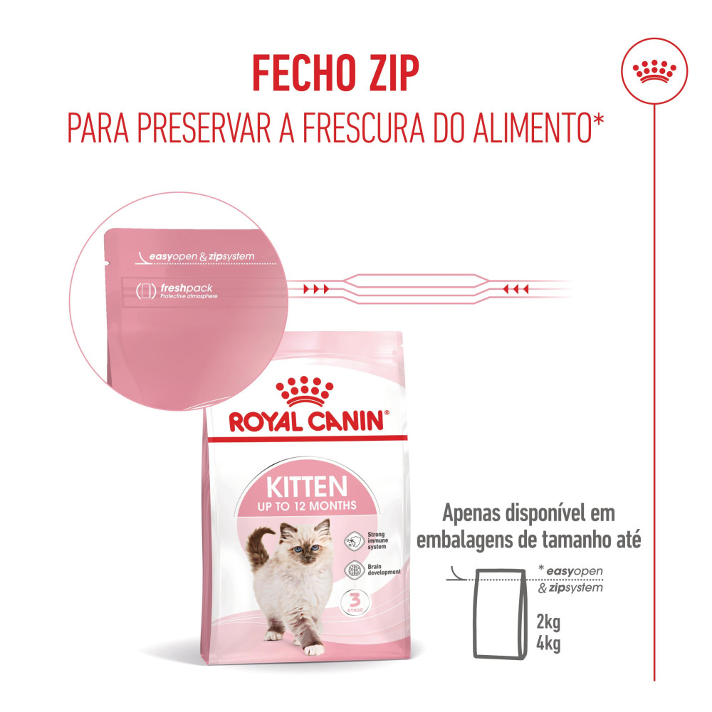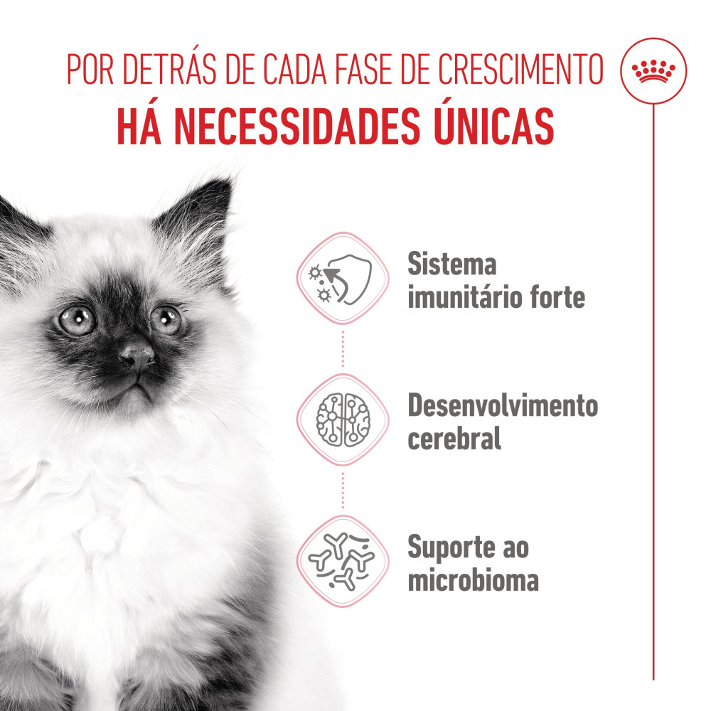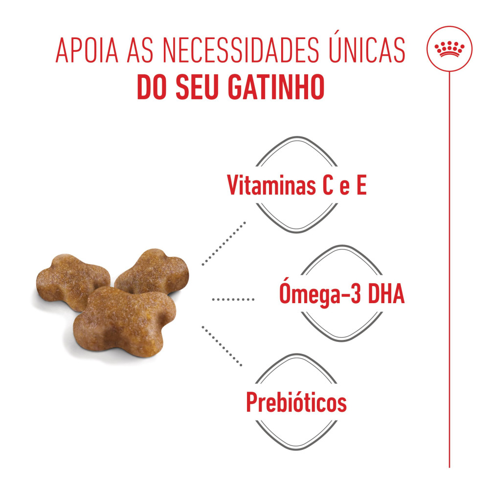 Dê ao seu gatinho tudo o que ele precisa para crescer saudável e cheio de energia! Royal Canin Kitten foi desenvolvido para atender às necessidades nutricionais dos gatinhos na fase de crescimento (4 a 12 meses), garantindo suporte imunológico, desenvolvimento cerebral e digestão equilibrada.