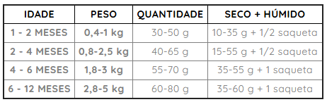 | Idade | 2 meses a 1 ano |