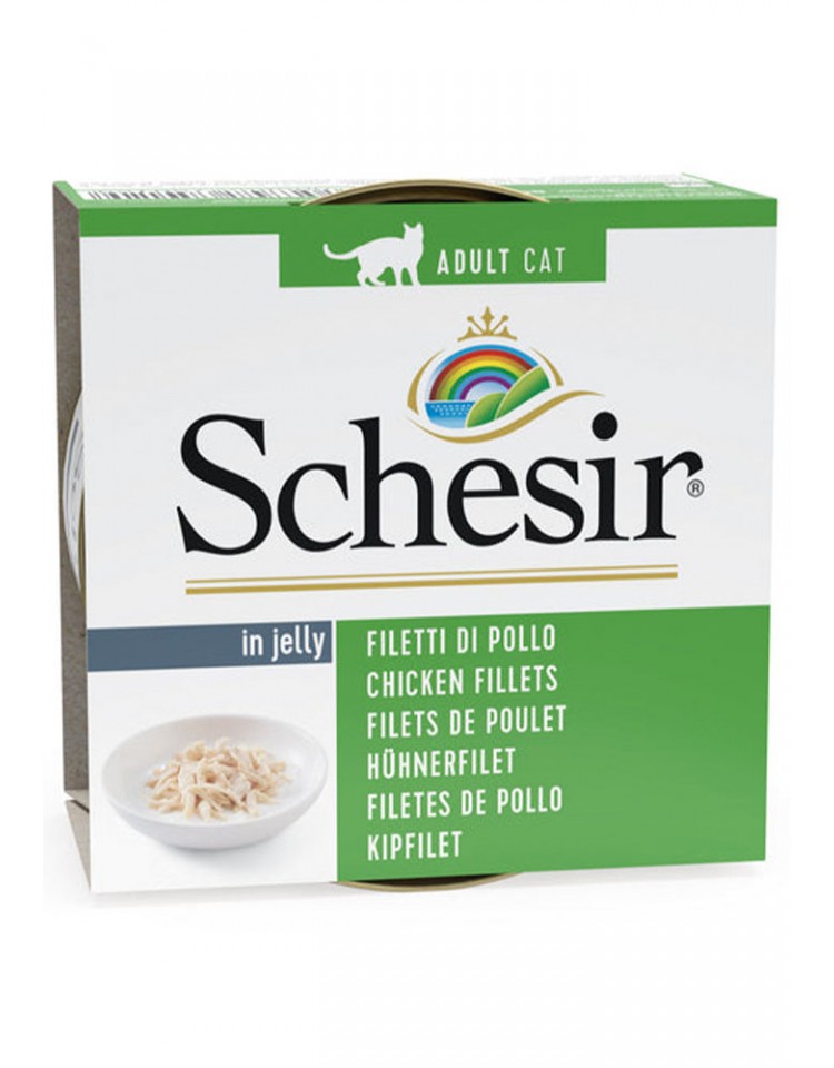 Descrição Detalhada: Mime o seu gato com uma refeição digna de chef! A Schesir traz-lhe autênticos filetes de frango cozidos a vapor, preparados à mão e envolvidos numa gelatina suave que os felinos adoram.